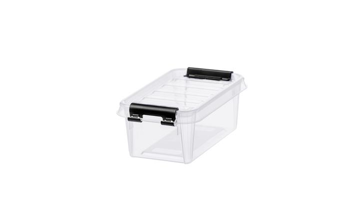 Műanyag tárolódoboz, 0,3 liter, fekete fogantyúkkal, SMARTSTORE "Classic 0,5", átlátszó