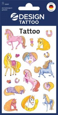 Matrica, tetoválás, 1 ív, 76x120 mm, AVERY ZWECKFORM, "Z-Design No.56681", csillámos lovak
