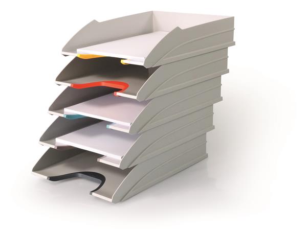 5 db elegáns irattálcát tartalmazó szett színes kivágással, mely megkönnyíti az iratok közötti keresést.