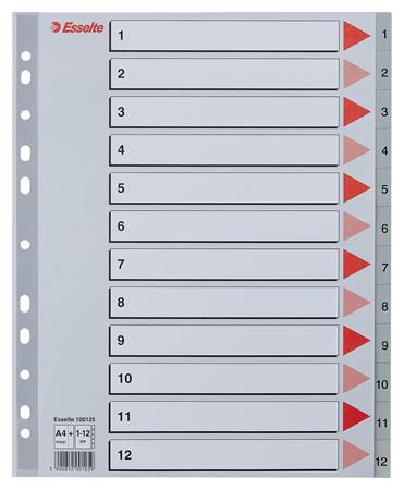 Regiszter, műanyag, A4 Maxi, 1-12, ESSELTE, szürke